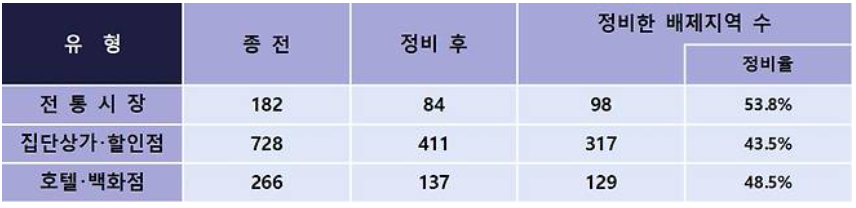 기존 배제지역 1,176개 중 544개, 비율로는 **46.3%**가 정비됐습니다.