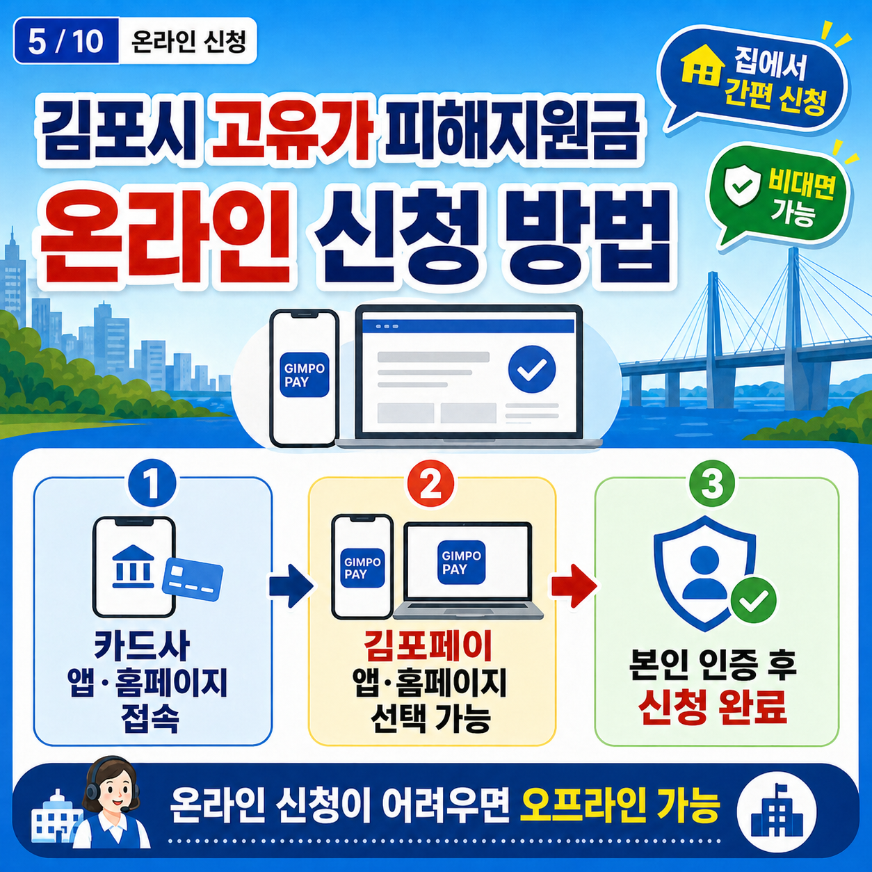 김포시 고유가 피해지원금은 온라인 또는 오프라인으로 신청할 수 있습니다.