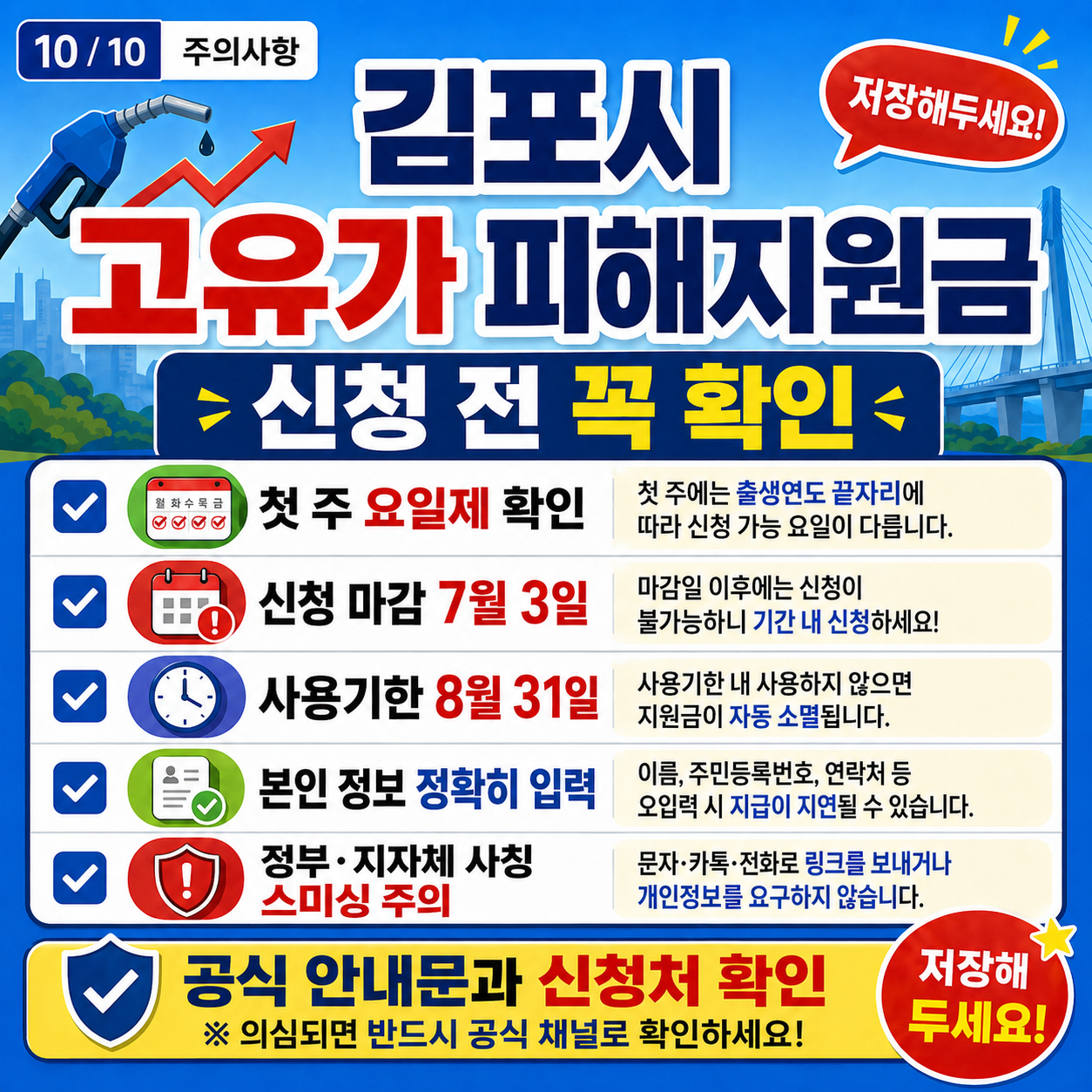 이번 글에서는 김포시 고유가 피해지원금의 신청 대상, 지급 금액, 신청 기간, 찾아가는 신청 방법, 사용 기한과 사용처를 한 번에 정리해드리겠습니다.