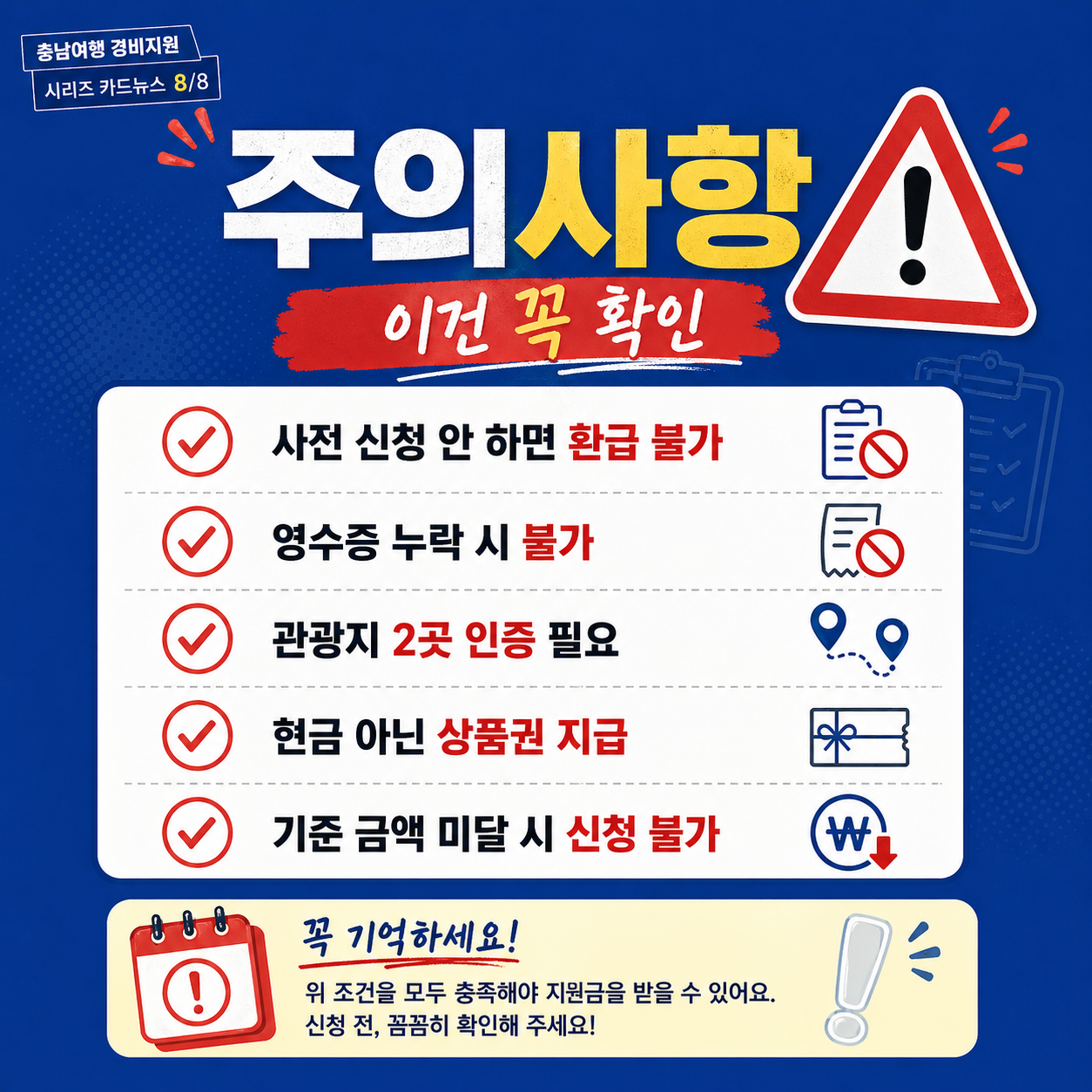 | 필수 조건 | 충주 관광지 2곳 이상 방문 |