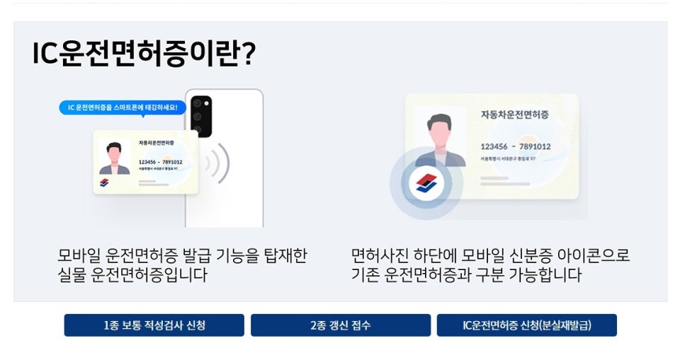 - 운전면허증 재발급 또는 갱신 신청 시 IC 면허증 선택